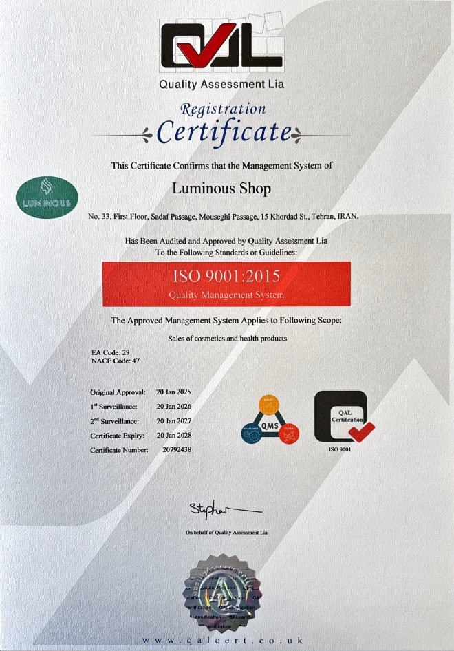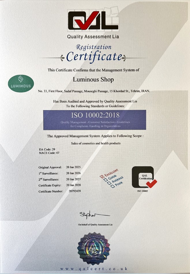 Why it matters to you: When you choose our skincare products, youβre choosing quality you can trust. This certification ensures that every product is made and distributed following strict international standards.